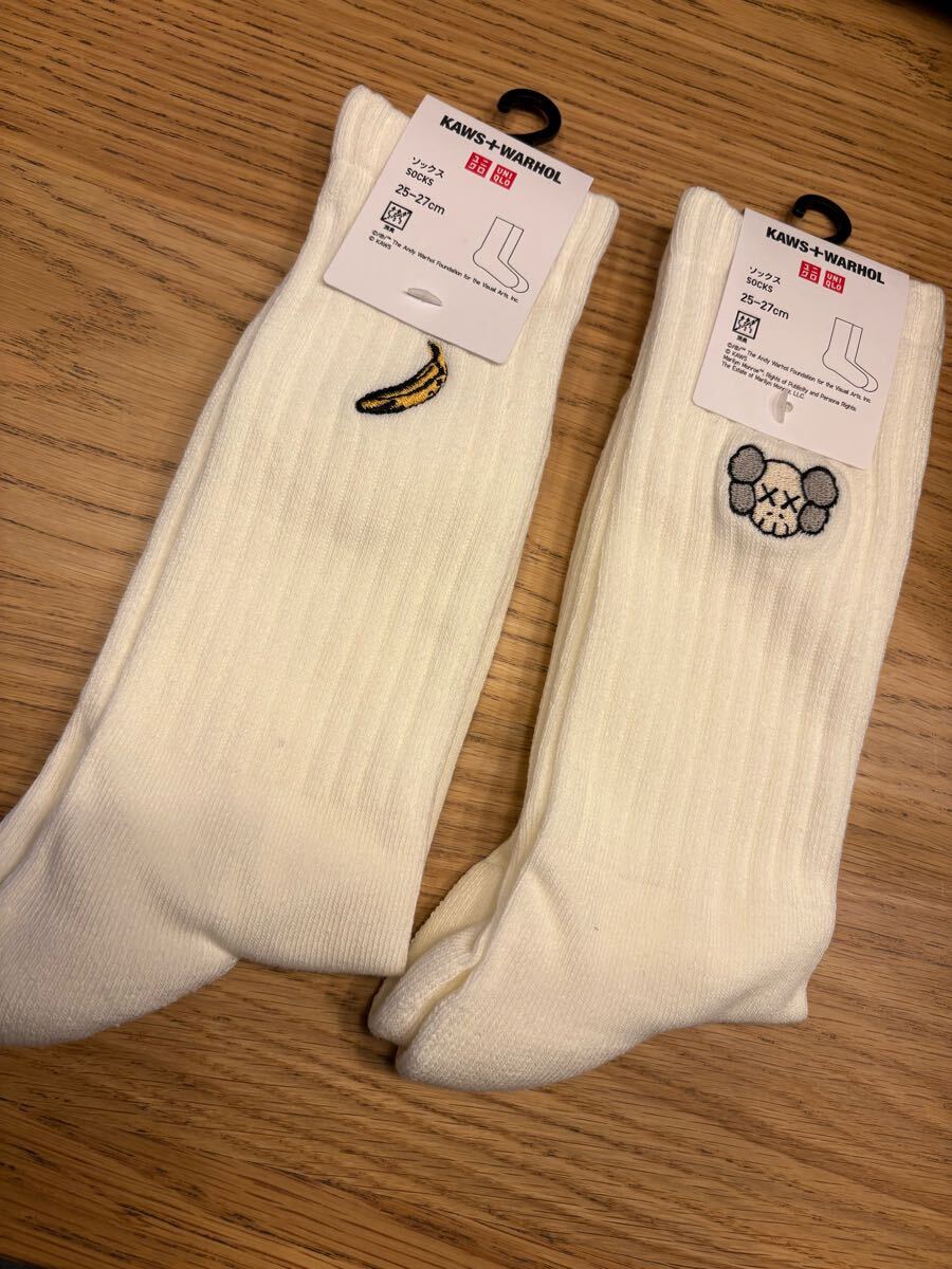 - 新品 未使用 UNIQLO × KAWS ユニクロ×カウズ+ウォーホル KAWS+WARHOL ソックス 2足セット 25-27cm クリームホワイト系 【送料無料】