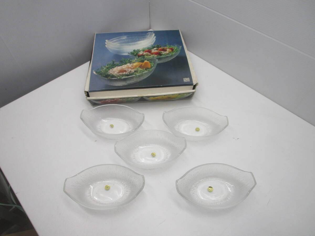 - O896★HOYA 小判鉢 デザート皿 19cm 5点セット MBB2819 ホヤクリスタル★未使用品