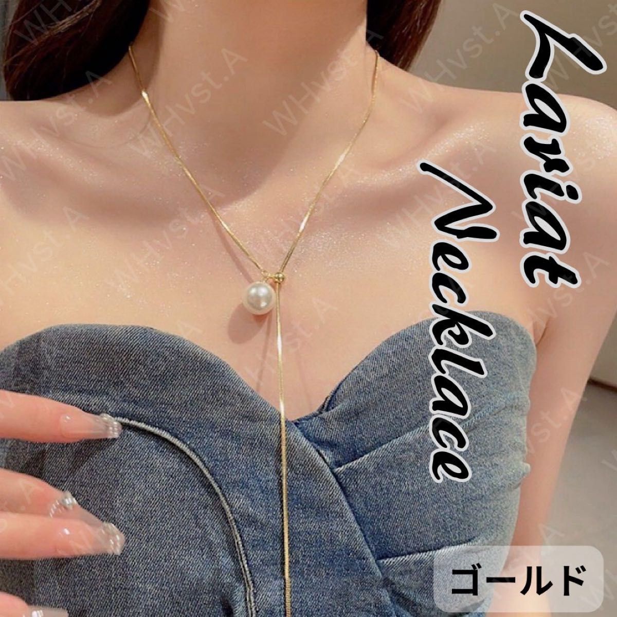 - ネックレス ラリエット パール ロングネックレス 新品 ゴールド 上品 Y字 華やか