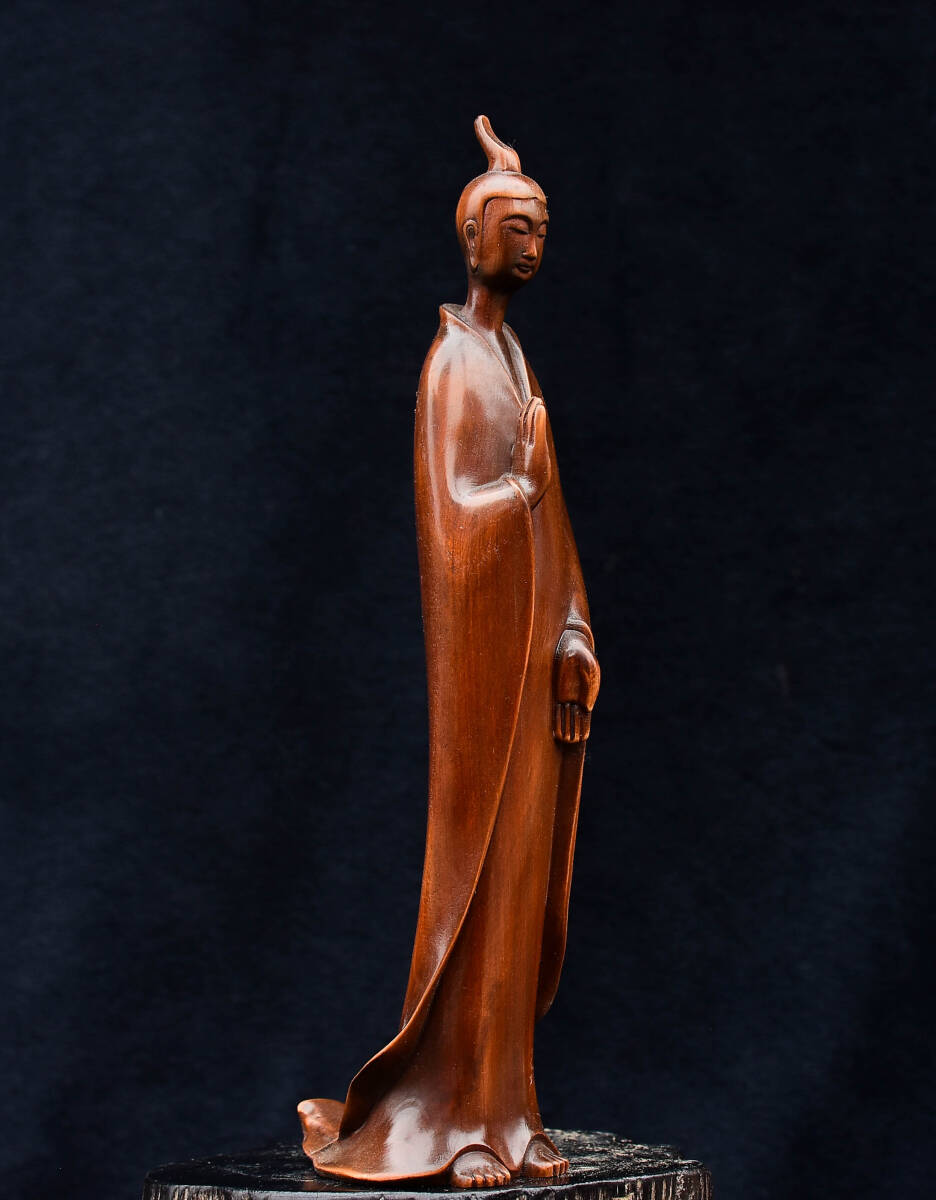 - 旧藏 黄楊木彫 悟道 仏教古美術 文案 置物 極細工 古賞物 古美味 東洋彫刻 時代物 骨董 中国古美術