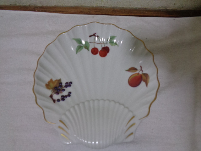 - ROIYAL WORCESTER-ロイヤルウースター/サラダプレート・前菜皿・盛り皿/シェル型白磁プレート/Evesham/MADE IN ENGLAND/美品