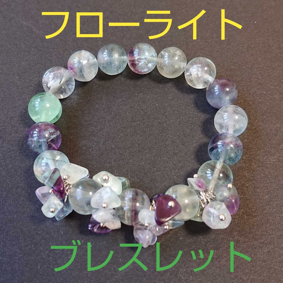 > フローライト★ブレスレット★10㎜玉&チップフラワー★FV-06★オペロンフリーサイズ★現品★1個《同梱・まとめて取引可能》