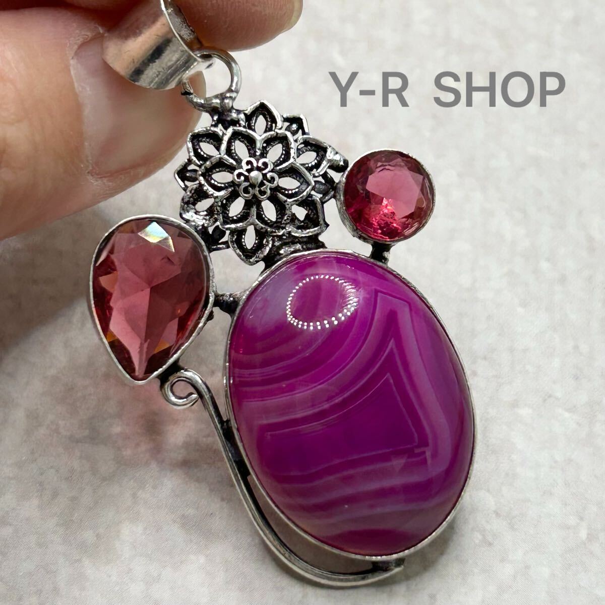 - 天然石★ピンクアゲートとルビーのアンティーク調ペンダントトップ ★レディースメンズネックレスシルバー925刻印エスニック新品宝石Y-R