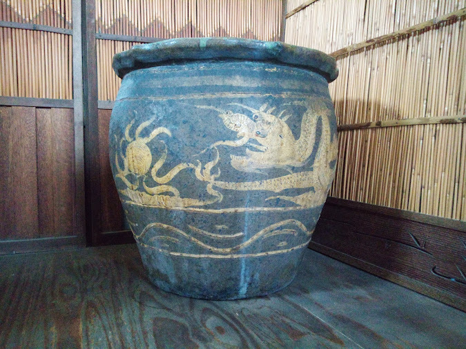 > ◇《引取限定》ピータン つぼ/雲竜図 焼き物 壺 甕 かめ 大型 古い メダカ 睡蓮鉢 花器 植木鉢 置物 コレクション アンティーク 古道具