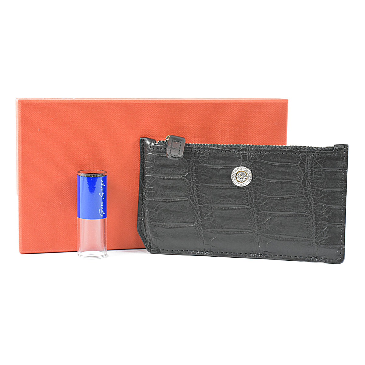 - クロコダイル 未使用品 小銭入れ付き カードケース ブラック アリゲーター メンズ 財布 ジルコニア付き
