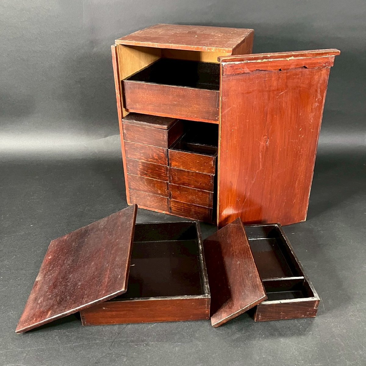 - SW0401-55-7-3 現状品 重箱 木製 弁当箱 漆器 漆芸 工芸品 段 伝統工芸 高さ36.5㎝ 幅22.3㎝ 奥行22.5㎝ 100サイズ