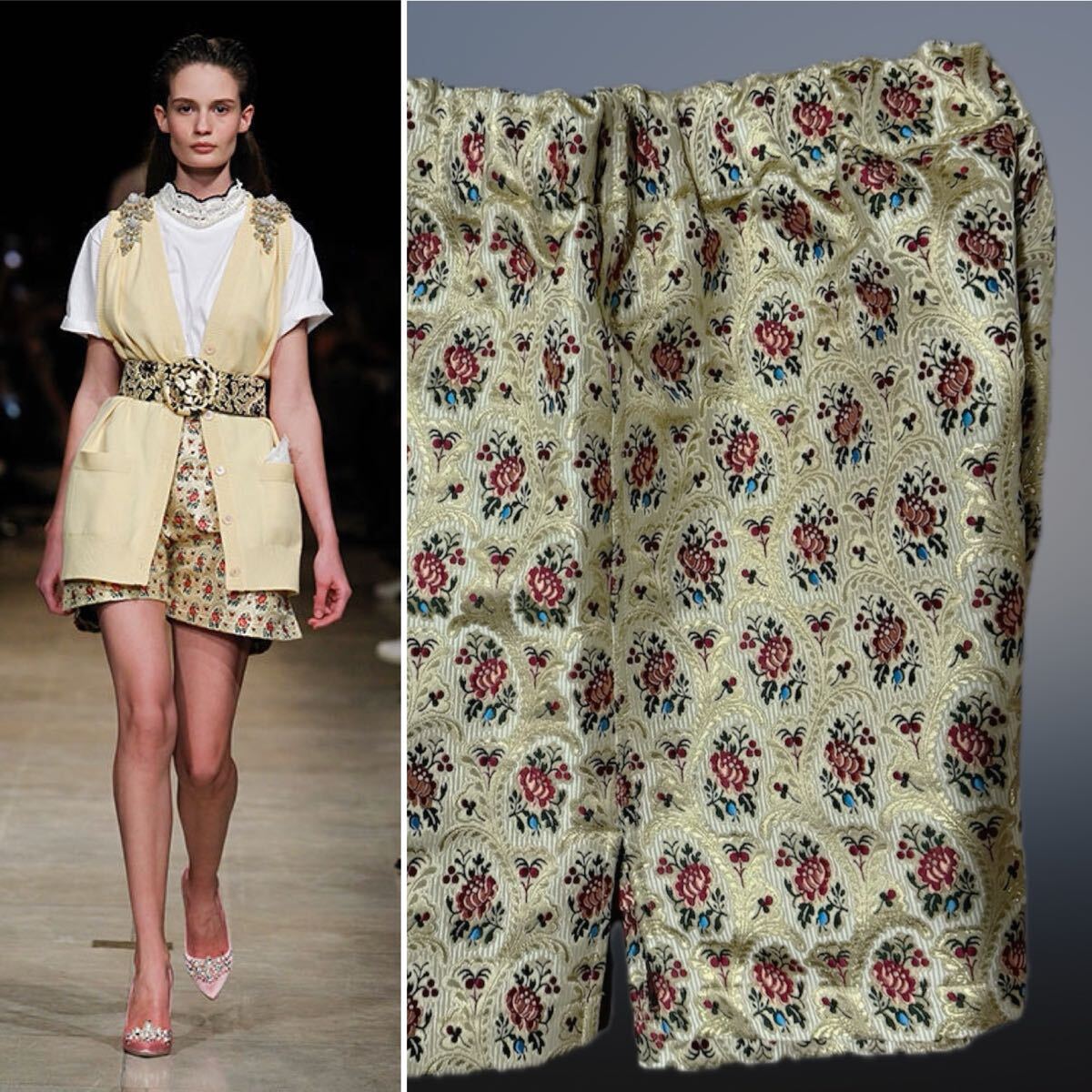 - イタリア製 miumiu ミュウミュウ 花柄刺繍ジャガード ショートパンツ 40 ゴールド 薔薇柄 ミラノコレクション