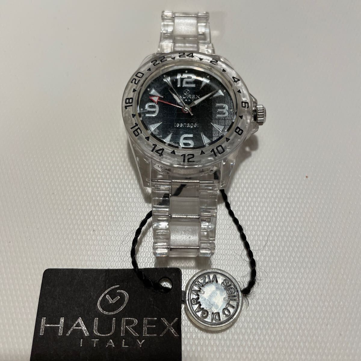 - 未使用タグ付!HAUREX ITALY teenager ハウレックス イタリー 腕時計 クリアタイプ ブラック ダイヤル 42mm レア!