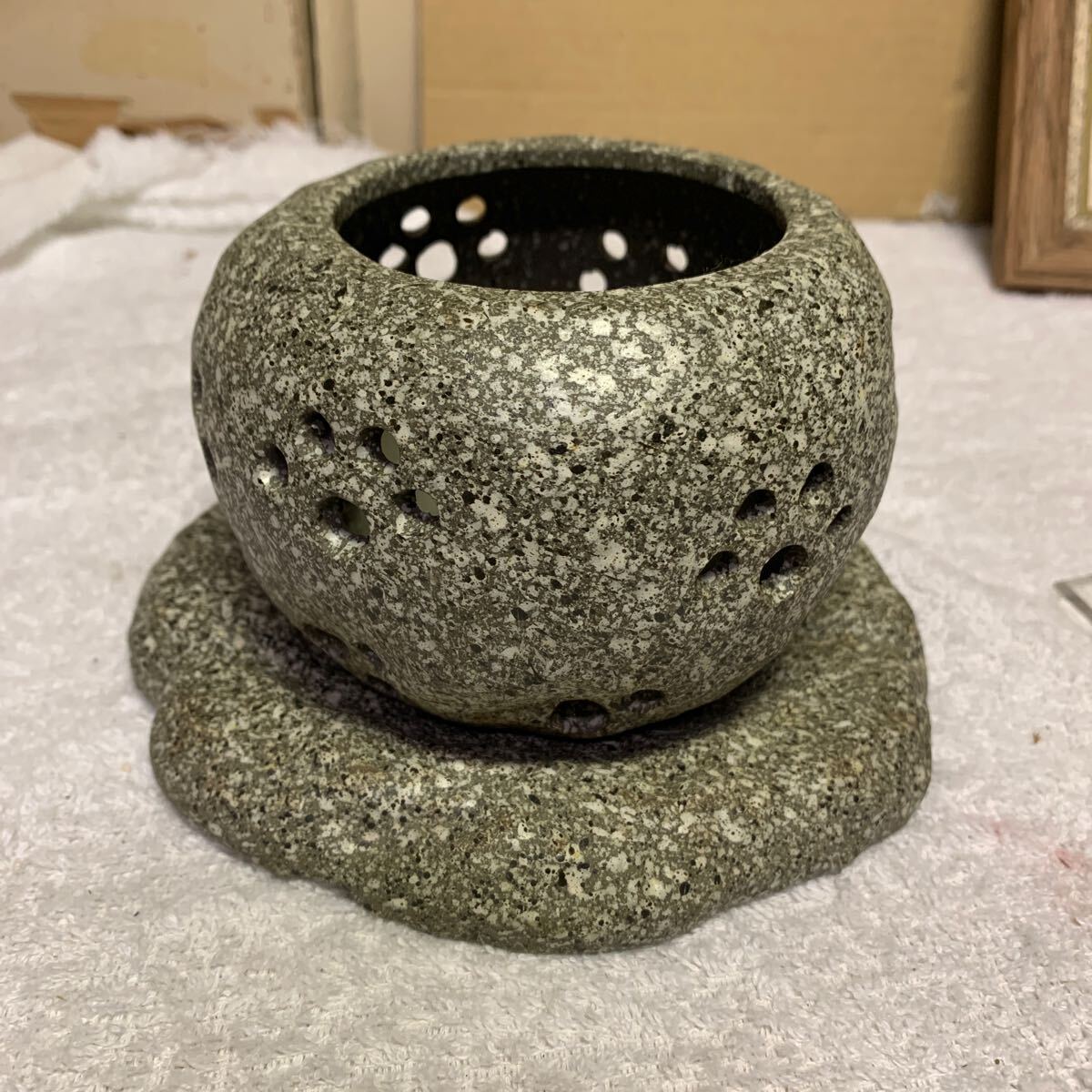 - ガーデニング 香炉 盆栽鉢 置物 石穴 オブジェ