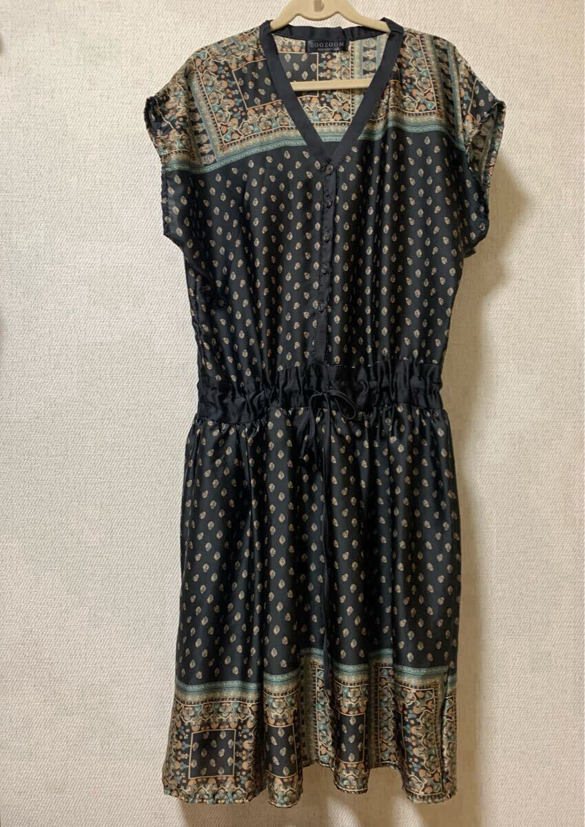 > 美品 ZOOZOOM ズズム ノースリーブ ワンピース チュニック F ポリエステル100% 紺 ネイビー スカーフ プリント の韓国 KOREA エスニック