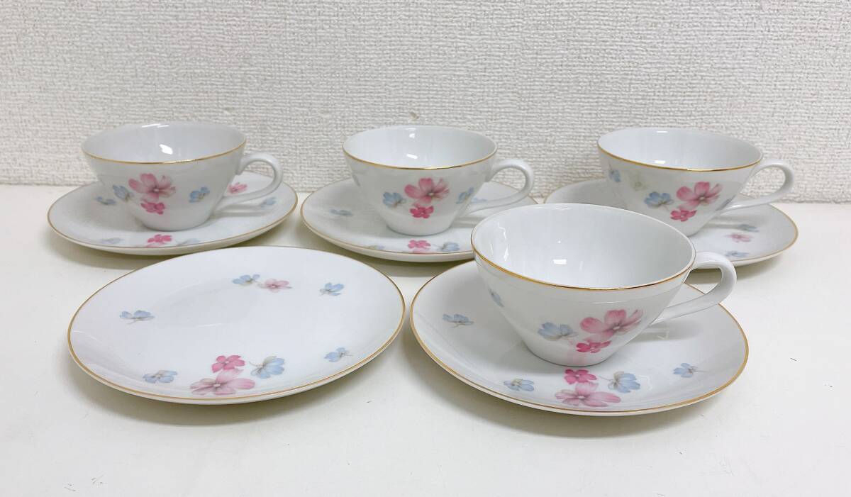 - レトロ 【オールド ナルミ フローレンス ティーカップ4客・ソーサー5枚 セット】金縁/来客用にも◎/A74-265