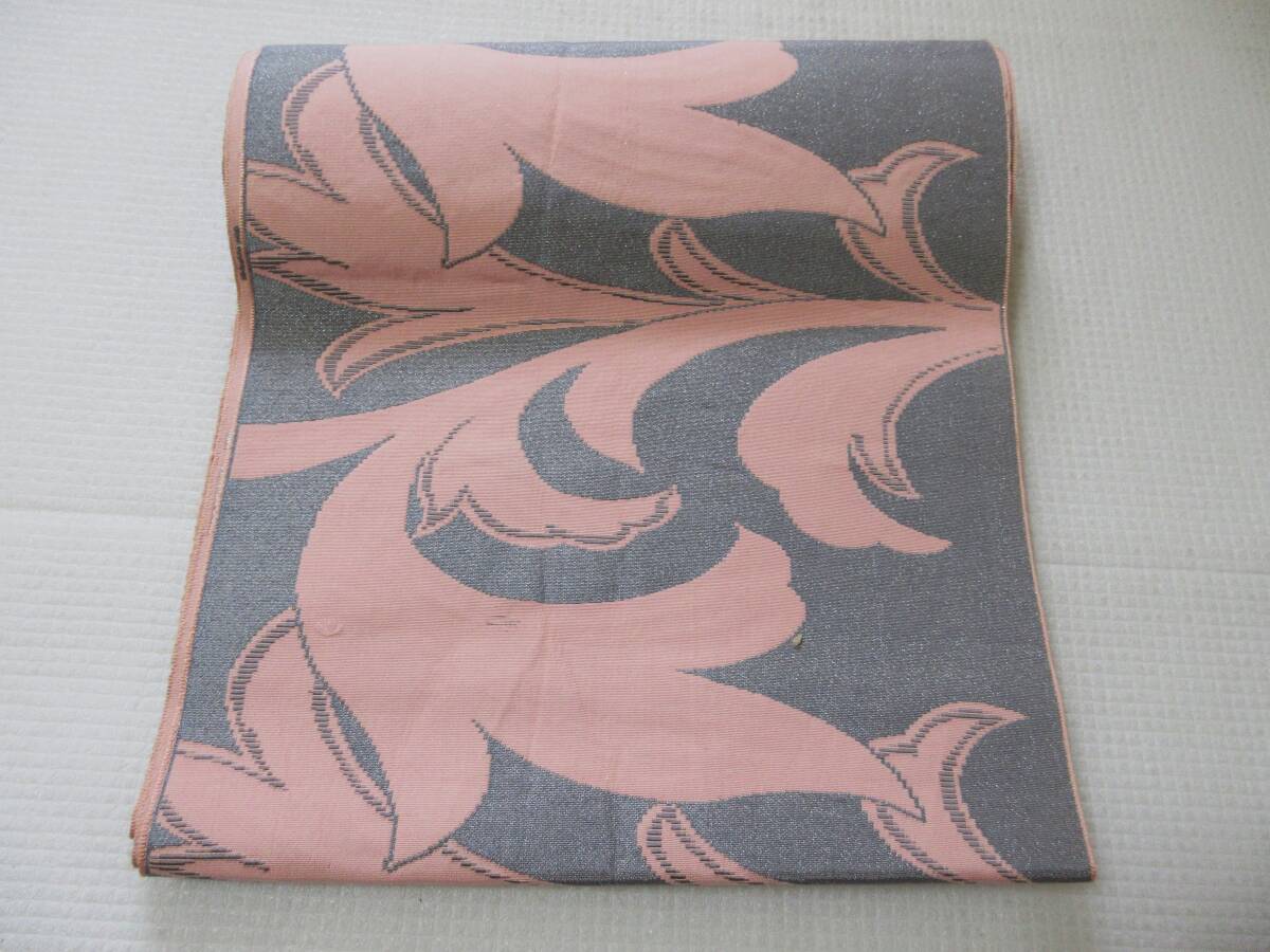 - 49-14 和装 帯 約28.5㎝×373.5㎝ 柄 ピンクシルバー系