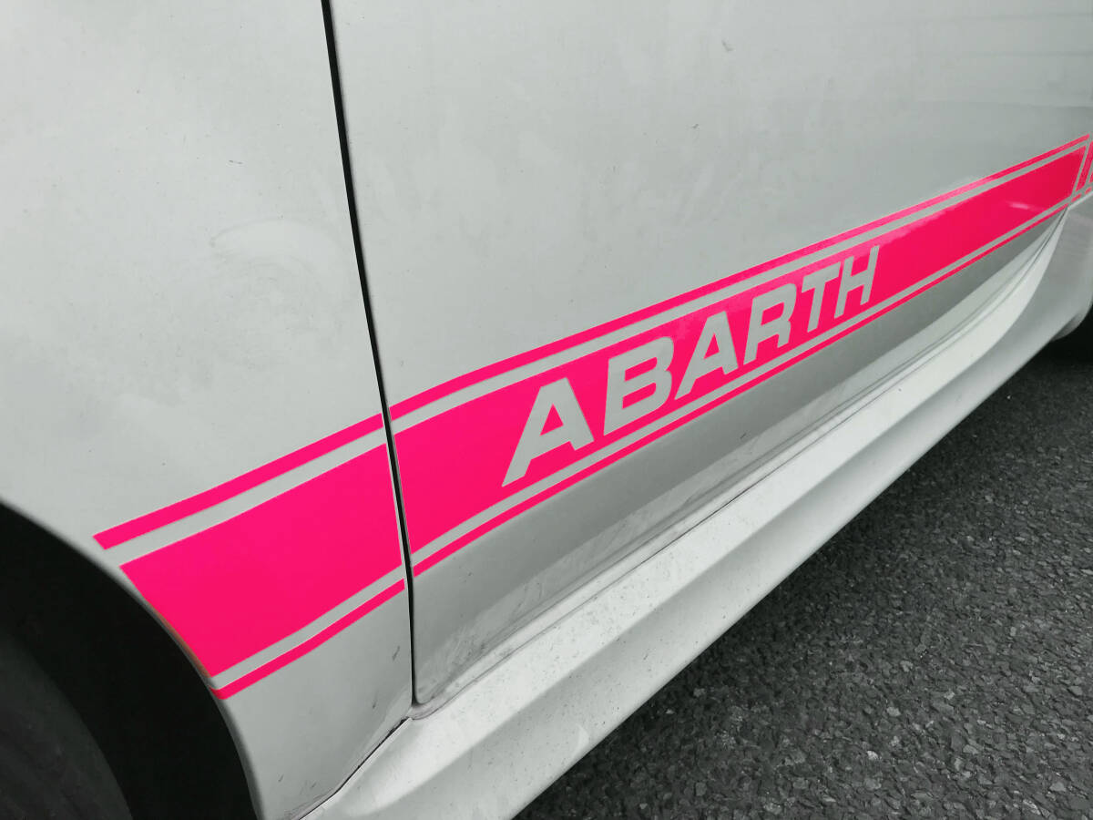 - 残1セット 高級シート 使用 蛍光色 蛍光ピンク サイドデカール 左右セット アバルト 595 フェーズ4 タイプ 695 F595 500 FIAT ABARTH PISTA