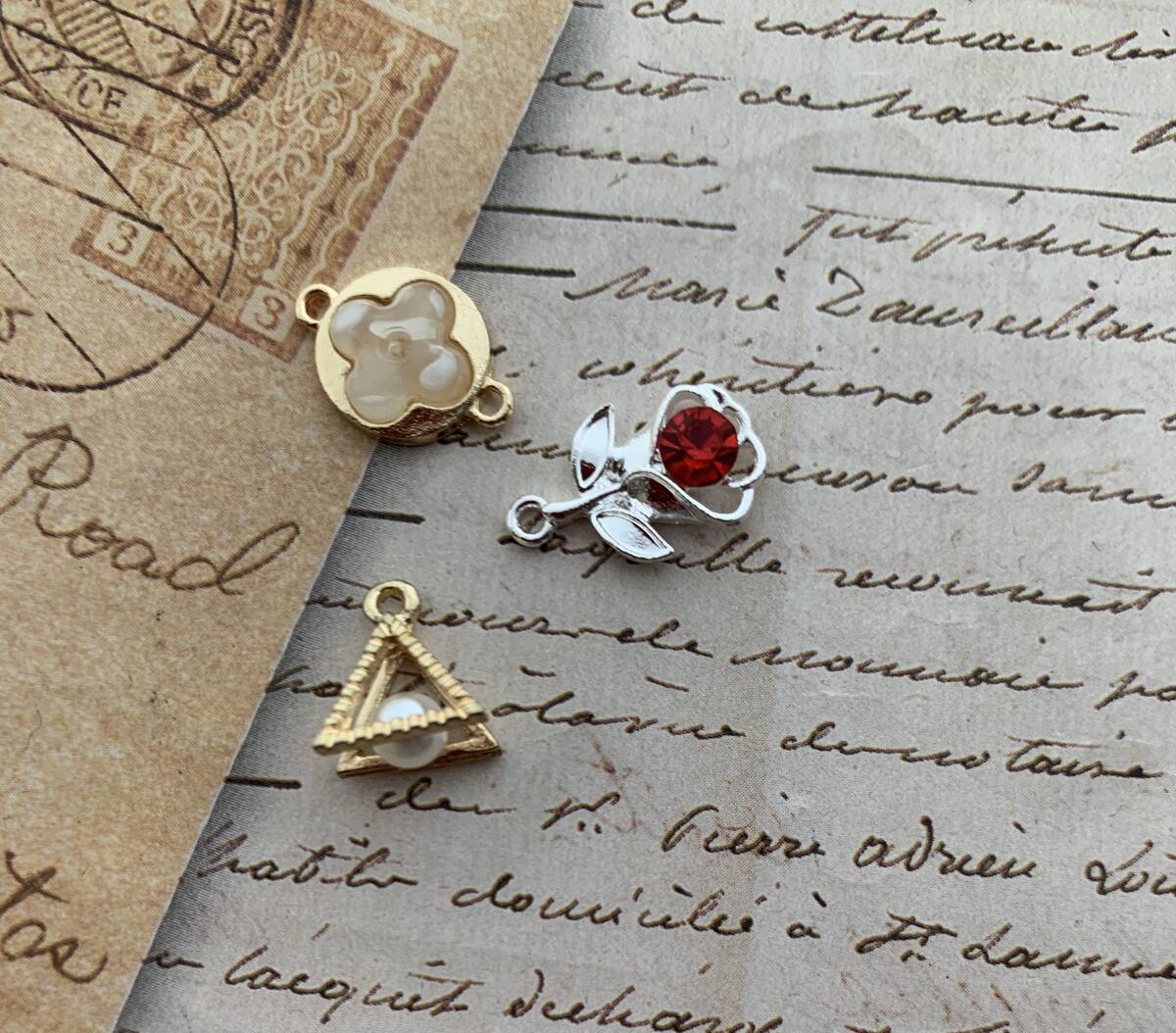 - チャーム3個セット 花 三角 飾りデコ 飾り ハンドメイド材料 クラフト A155