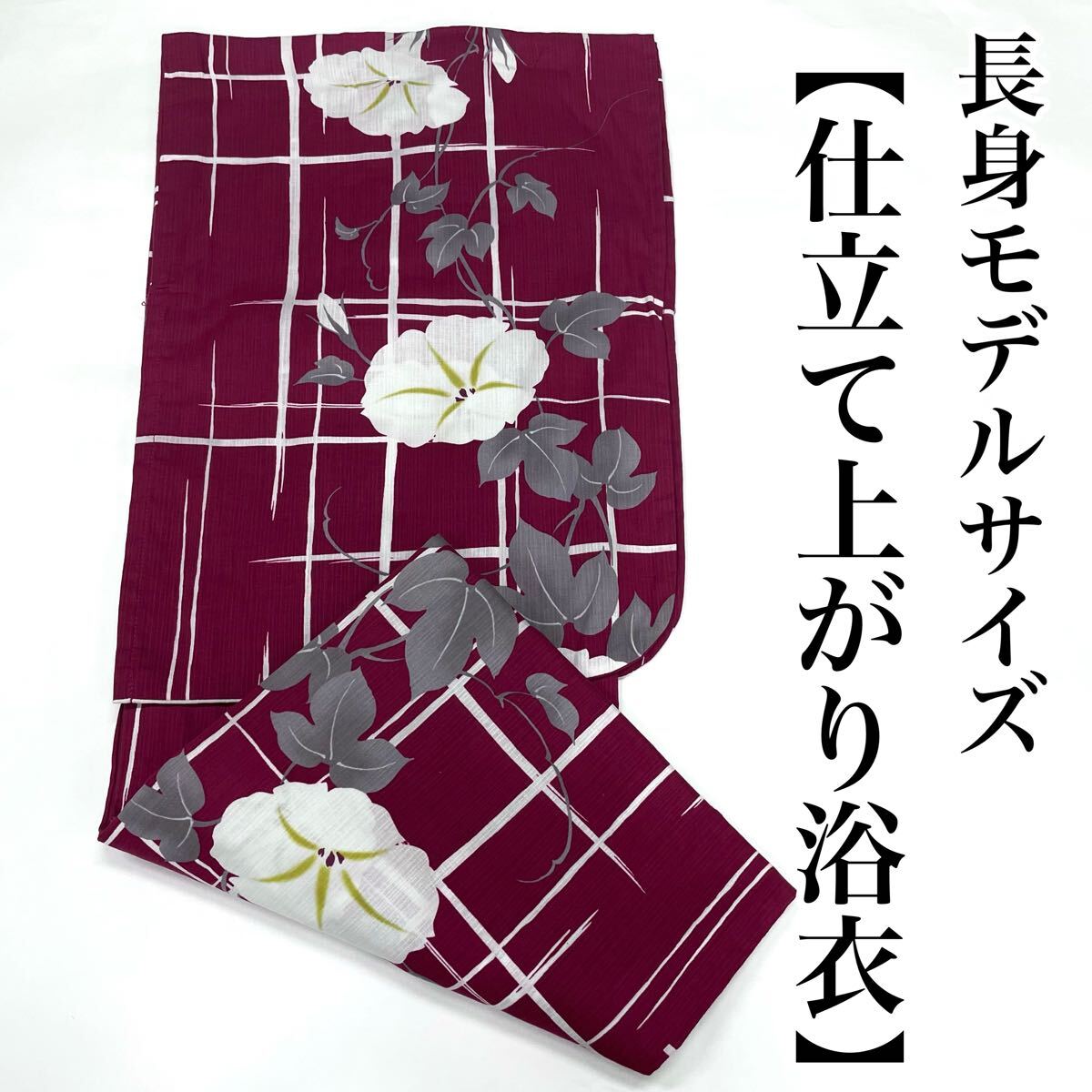 - 長身 モデルサイズ 浴衣 綿 女性 女 女性用 プレタ浴衣 女浴衣 綿浴衣 大人用 大人 仕立て上がり 2L寸 LL 165 170 ワイン色 朝顔