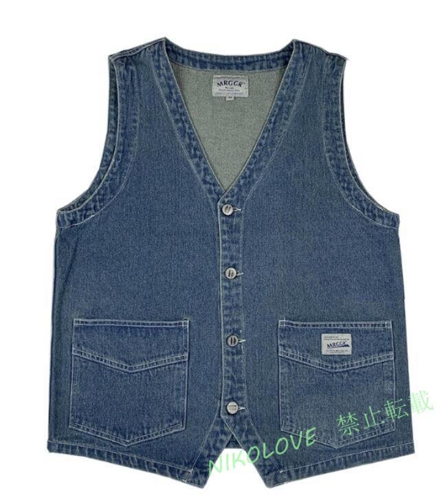 - 新品 サイズ選択可M~2X ヴィンテージ加工デニム ワークベスト メンズ アメカジ ジレ
