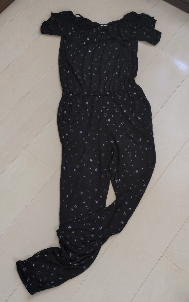 - オールインワン つなぎ エイチアンドエム 150cm 黒 星柄 女の子 子供 H&M キッズ 可愛い ブラック ツナギ