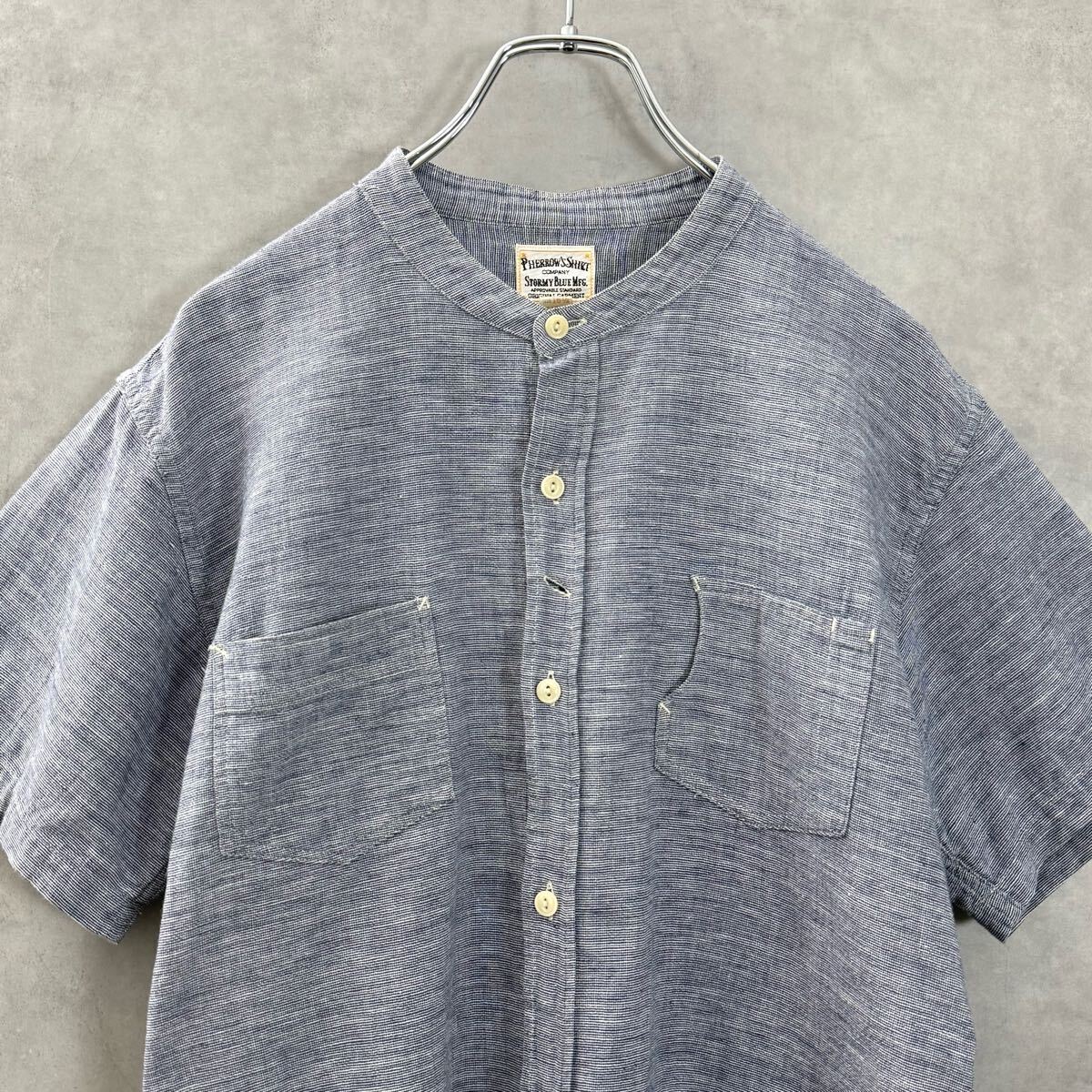 - Pherrow's フェローズ コットンリネンレーヨン半袖バンドカラーシャツ ネイビー L