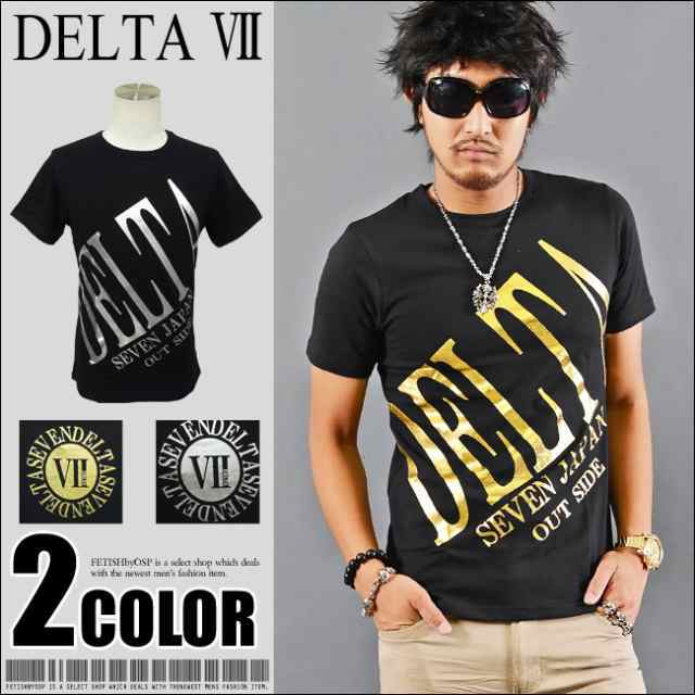 > DELTA SEVEN ブランド ロゴ 箔プリントストレッチ 半袖 Tシャツ del-70644 メンズ 新品ブラックxゴールド XL