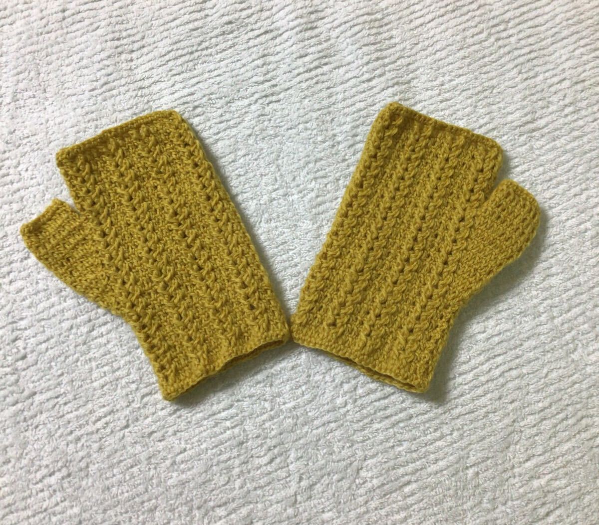- 【編ハ-2】手編みのハンドウォーマー 指先なしのミトンタイプ スマホ、パソコン操作、読書等作業がしやすく便利♪ 左右どちらでもOK!