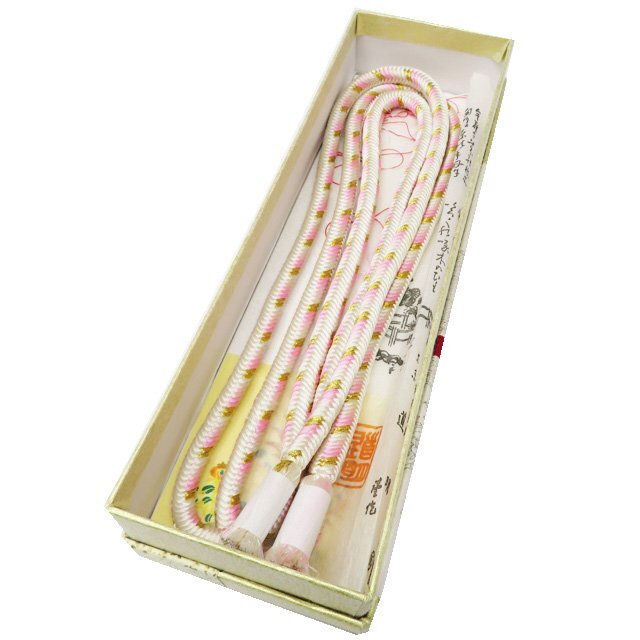 - 帯締め おびじめ 組紐 道明 無形文化財 箱付き 和装小物 新古品 正絹 白色 ピンク系色 多色 金 きもの北條 A1180-7