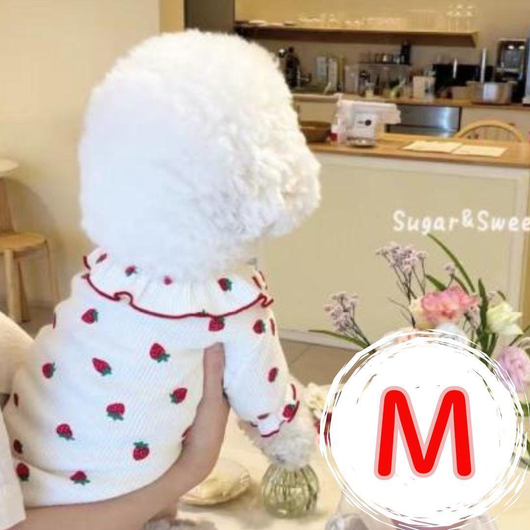 - 犬服 ドッグウェア いちご柄 ホワイト M かわいい フリル ストロベリー
