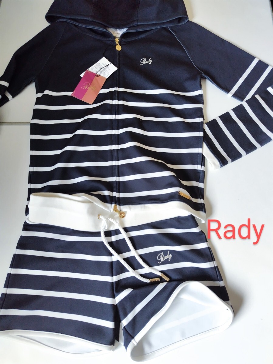 - タグ付 Rady レディ Fサイズ マリンボーダー セットアップ フルジップ ストレッチ 長袖パーカー +ショートパンツ 未使用品