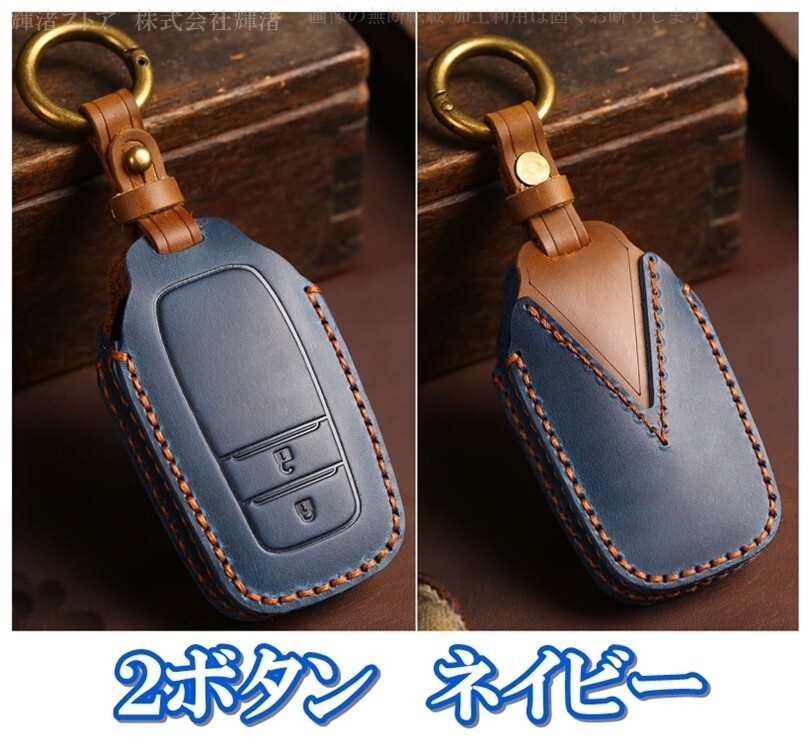 > 新品即決 トヨタ 本革 レザー 紺 キーケース キーカバー プリウス60系 アクアMXPK ハリアー80系 GRヤリス ハイラックス ランドクルーザー