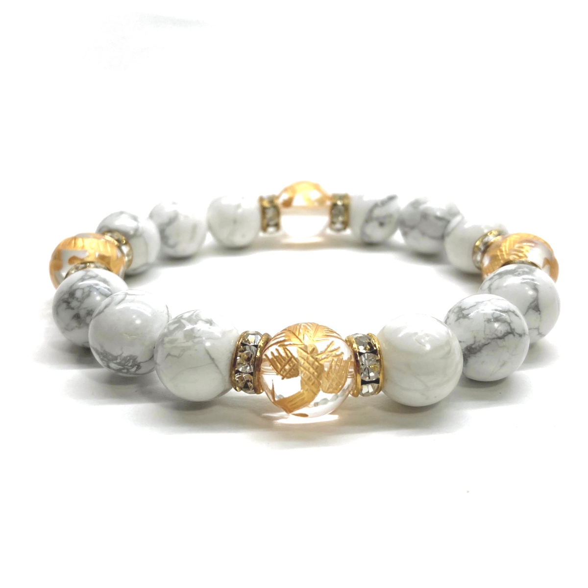 - 四神獣金彫水晶×ハウライト 12mm パワーストーン ブレスレット天然石 青龍 白虎 玄武 朱雀 運気上昇 お守り 金運 四神獸 四神相応 G