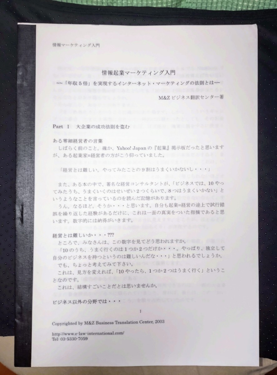 - 情報起業マーケティング入門 M&Zビジネス翻訳センター著 2003年発行