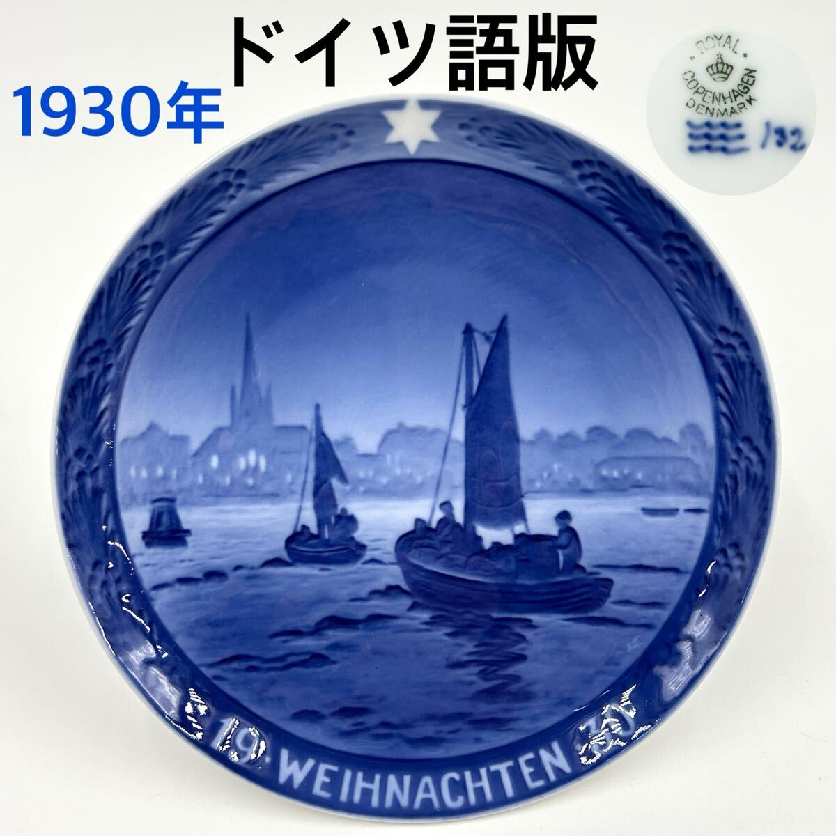 - ◆ 希少 ドイツ語版 ロイヤルコペンハーゲン 1930年 昭和5年 イヤープレート「港に向かう漁船」◆ WEIHNACHTEN ROYAL COPENHAGEN