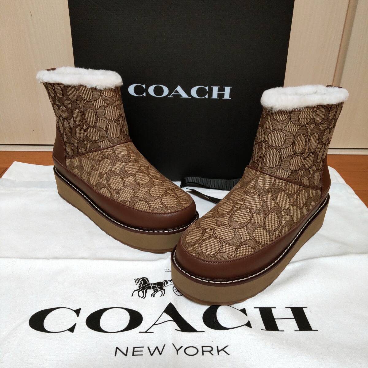 - 未使用即決 コーチ COACH ショートブーツ ボアブーツ 8C/24.5cm シグネチャー ベージュ
