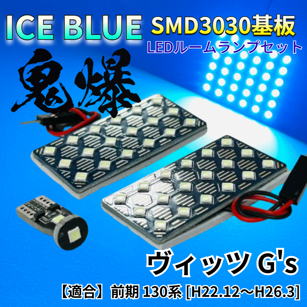 > 【アイスブルー】ヴィッツ G's 前期 130系 鬼爆基板 3030SMD LED ルームランプ セット 車内灯 室内灯 パーツ アクセサリ