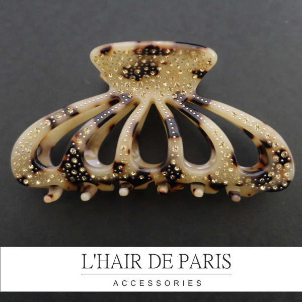 - ラグジュアリー■フランス製セルロースアセテート■ラレーヌクリップ Lサイズ■トパーズ ベージュ ヘアクリップ クラウン リズレ 煌びやか