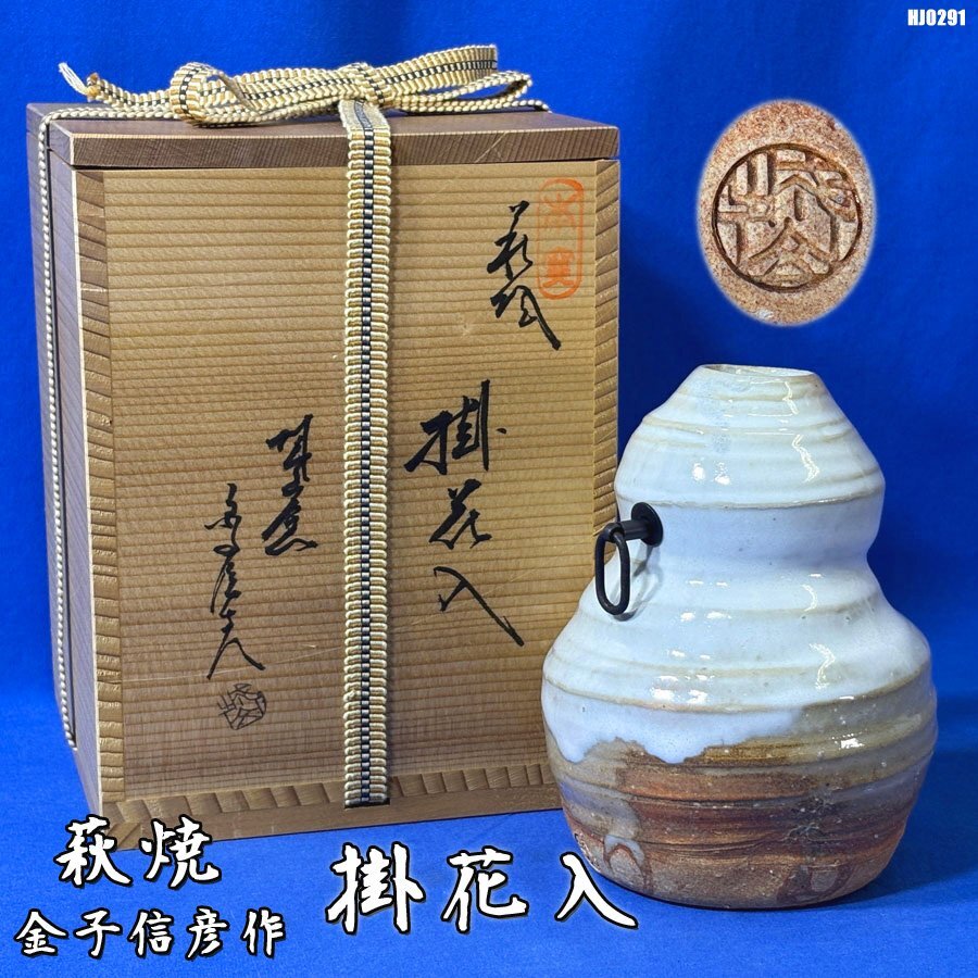 > 萩焼 掛花入 城山窯 金子信彦作 壁掛け 茶道具 共箱 骨董 古美術 アンティーク インテリア ◇HJ-0291