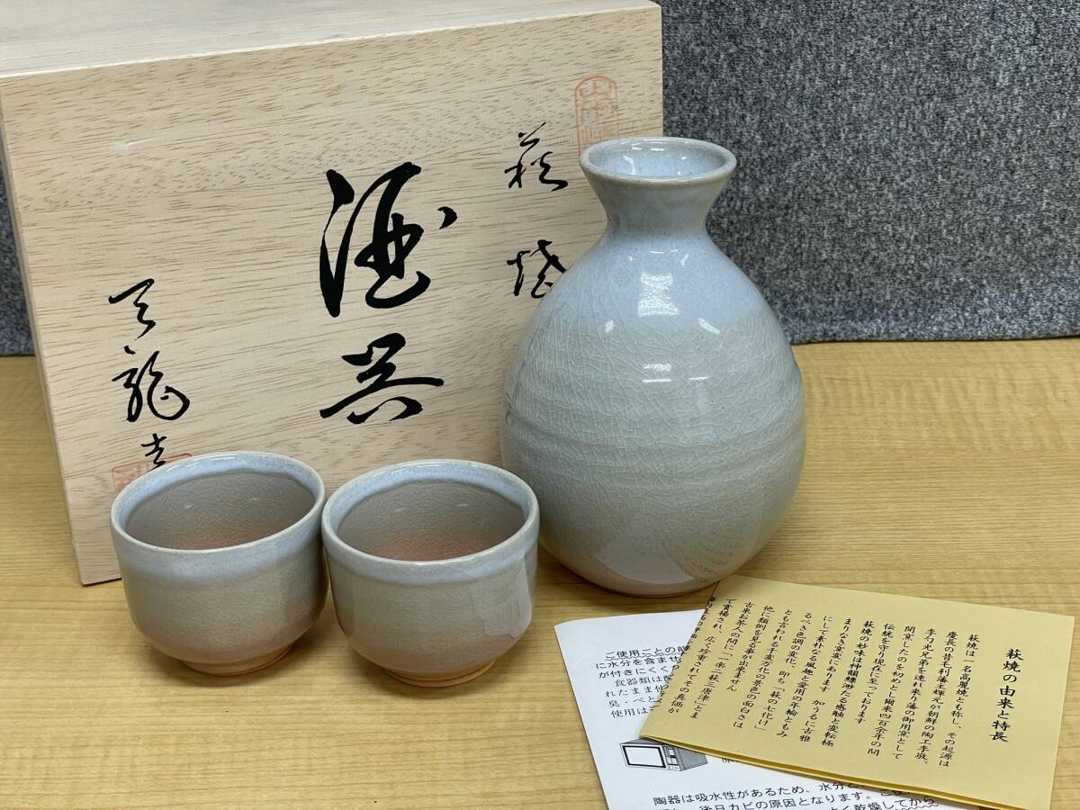 - 未使用★萩焼 天龍窯 酒器 徳利+ぐい呑み×2セット★揃え★S2545