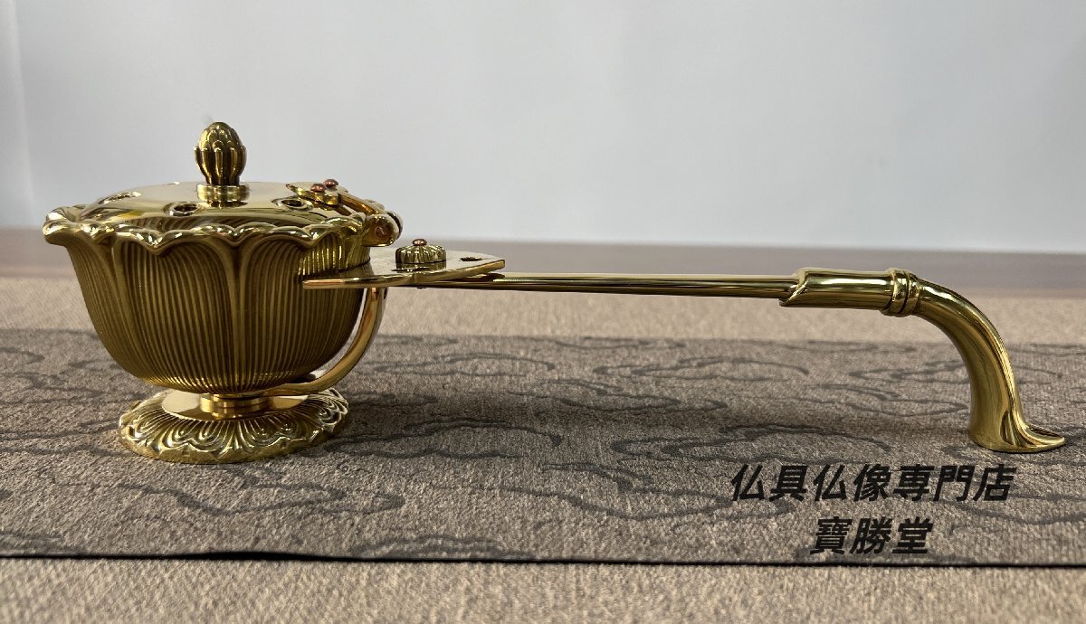 - 密教法具 蓮造柄香炉 仏具 真鍮製 【送料無料】【仏具仏像専門店寶勝堂】
