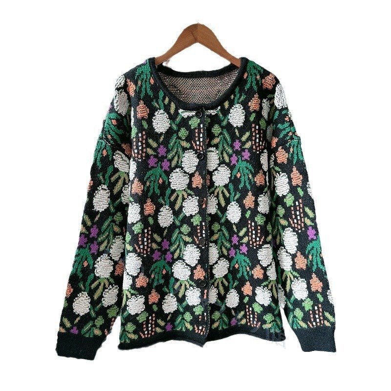 - 秋冬ニット セーター 羽織物 大人可愛い 着映え セーター カーディガン おしゃれ レディース ゆったり チュニック 前開け 織り込み花柄
