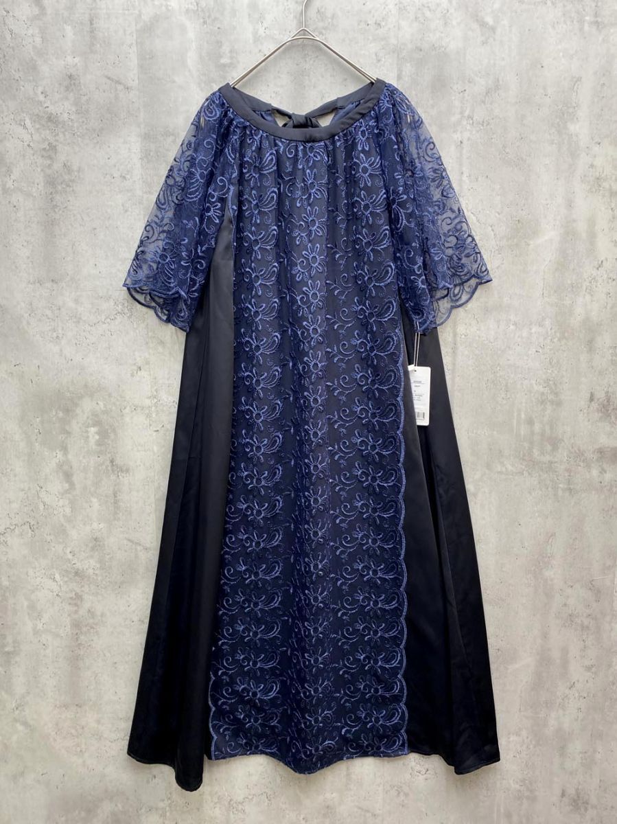 > ゆうパケットOK 新品 haremode ハレモード 323220 Aライン 刺繍ドレス レース パーティードレス ワンピース sizeS/紺 ■◆◎