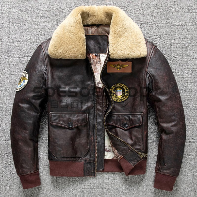 - 秋冬 上品 フライトジャケット メンズ ミリタリージャケット 空軍 牛革 本革 ウール襟 革ジャン S~5XLブラウン
