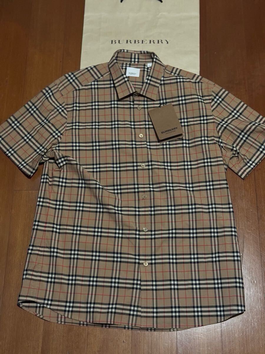 > 新品 新古 タグ バーバリー BURBERRY ノバチェック 加工 半袖シャツ メンズ メガ タータンチェック シャツ XLチェック バーバリージャパン