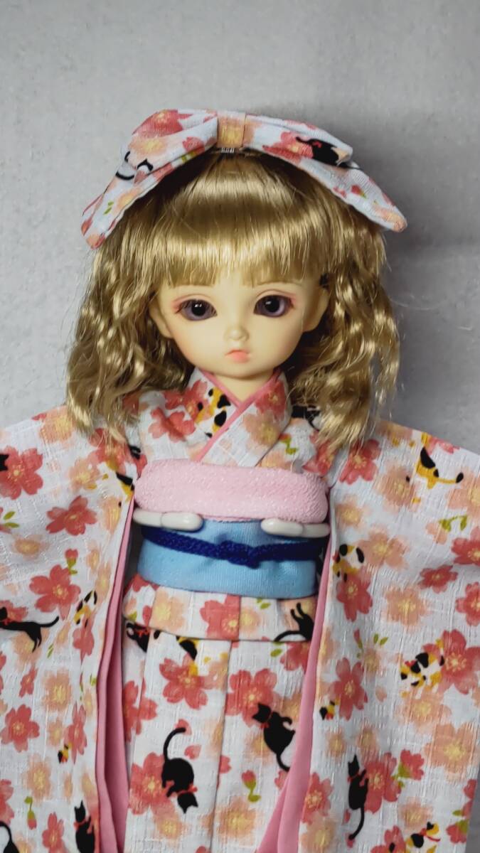 - ★幼SD YSD 振袖 着物 単衣 №8★水色 桜 猫 B