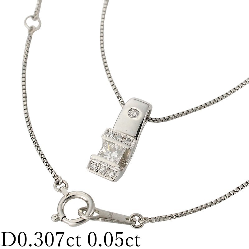 > プリンセスカット F SI1 ダイヤモンド/0.307ct ダイヤ/0.05ct ネックレス Pt900 Pt850 鑑定書付