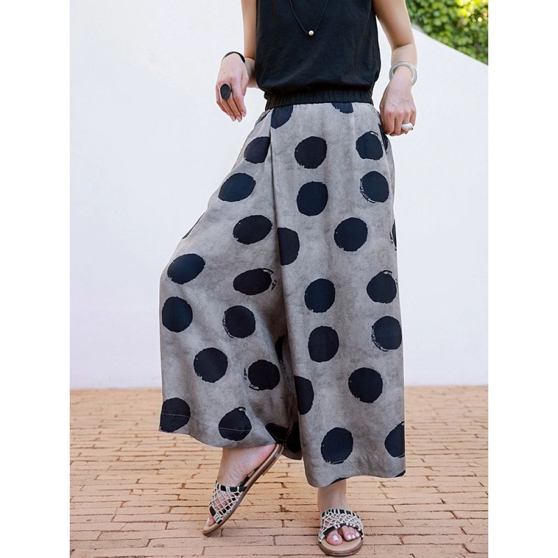 - 新入荷スカートようなズボン ゆったり フリーサイズ 大人可愛 ナチュラル ふんわり 綿混 サラサラ ドット柄 カジュアル