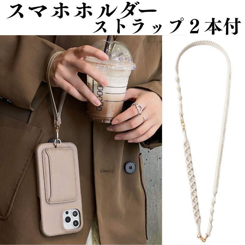 - 【iPhone14対応】スマホホルダー(ベージュ) ストラップ2本付セット(ショルダーストラップ と ハンドストラップ)