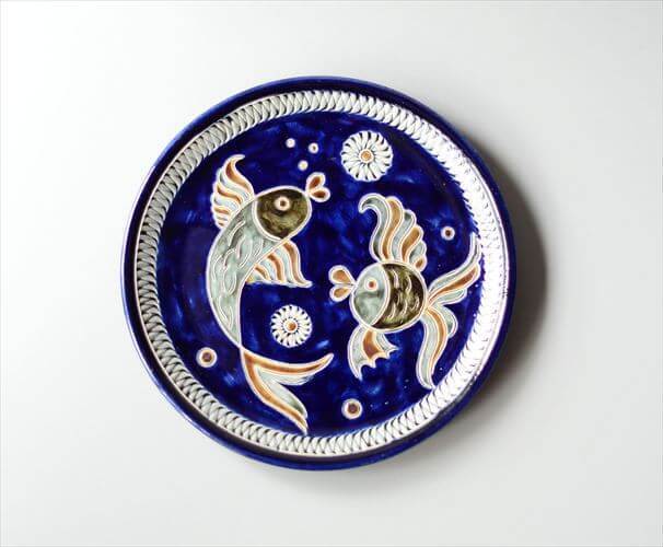 > 西ドイツ製 ヴィンテージ かわいい魚の絵皿 ハンドメイド ピクチャプレート ネイビーブルー ミッドセンチュリー アンティーク ig4417