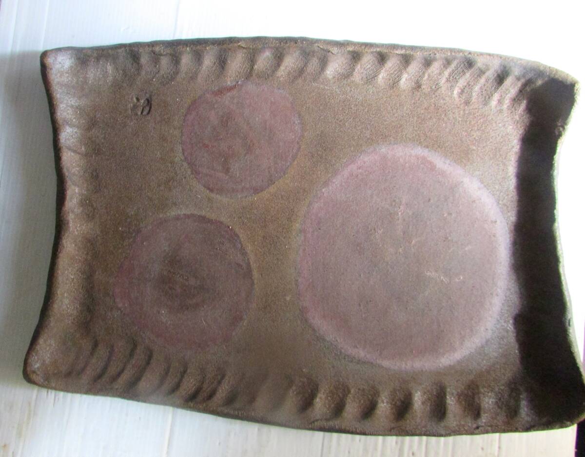- 備前焼 長方たたき皿(胡麻/ぼたもち)大皿 四角皿 約:(31㎝x46㎝x隅上4.5㎝)在銘/陶印⑥