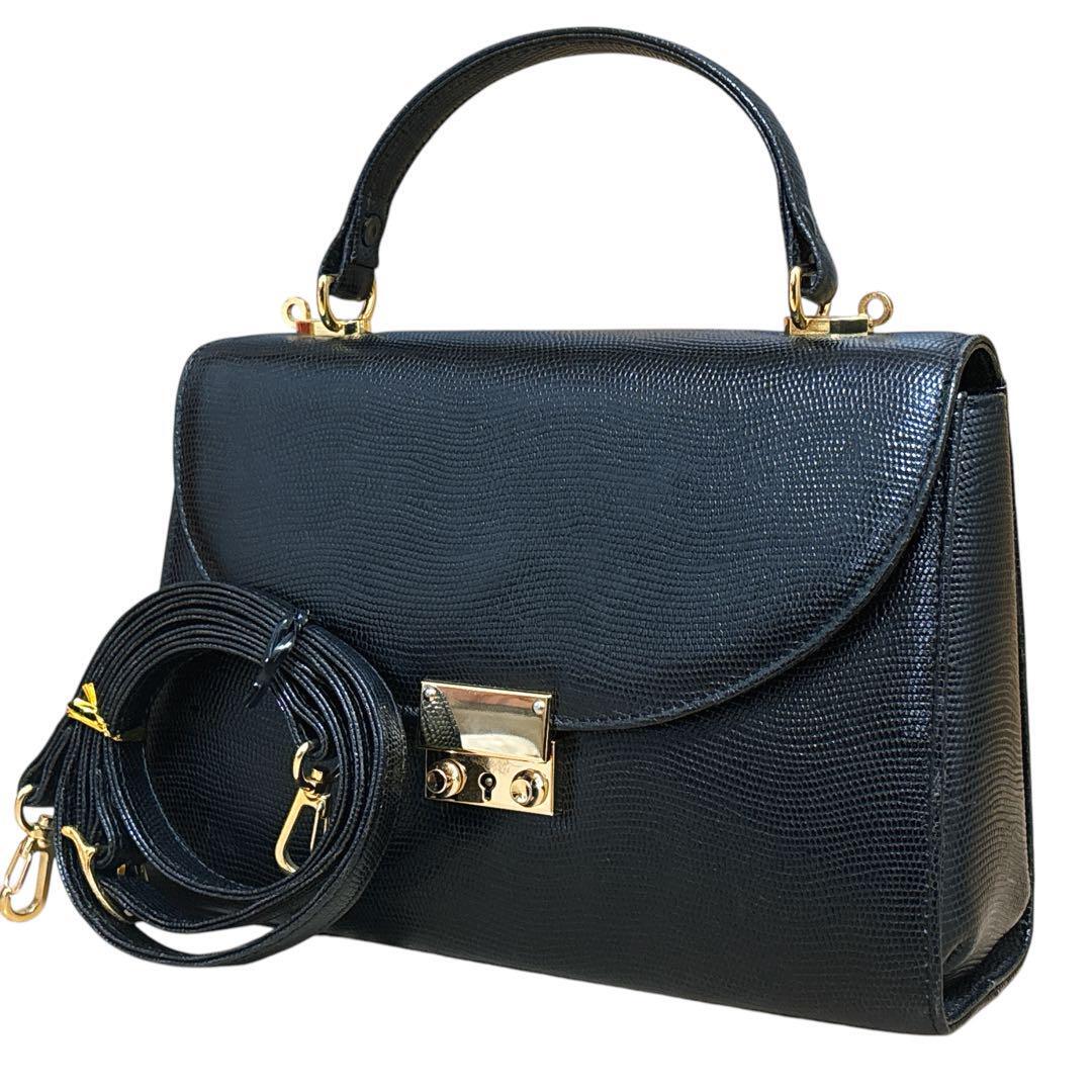 > ALLANT Produced LA by ALLANT 2way フォーマル ハンドバッグ ショルダーバッグ リザード型押し 黒 ブラック フォーマル ゴールド金具