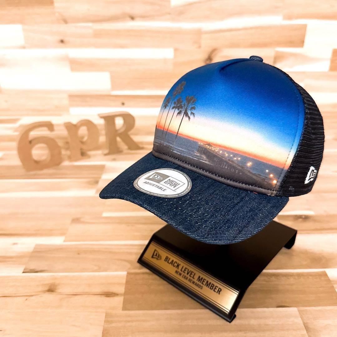 夕日をバックにオシャレな海沿いの風景がプリントされたNEW ERAのキャップです。バイザーにデニム生地を使用。夏のカジュアルなスタイルにピッタリなアイテムです。