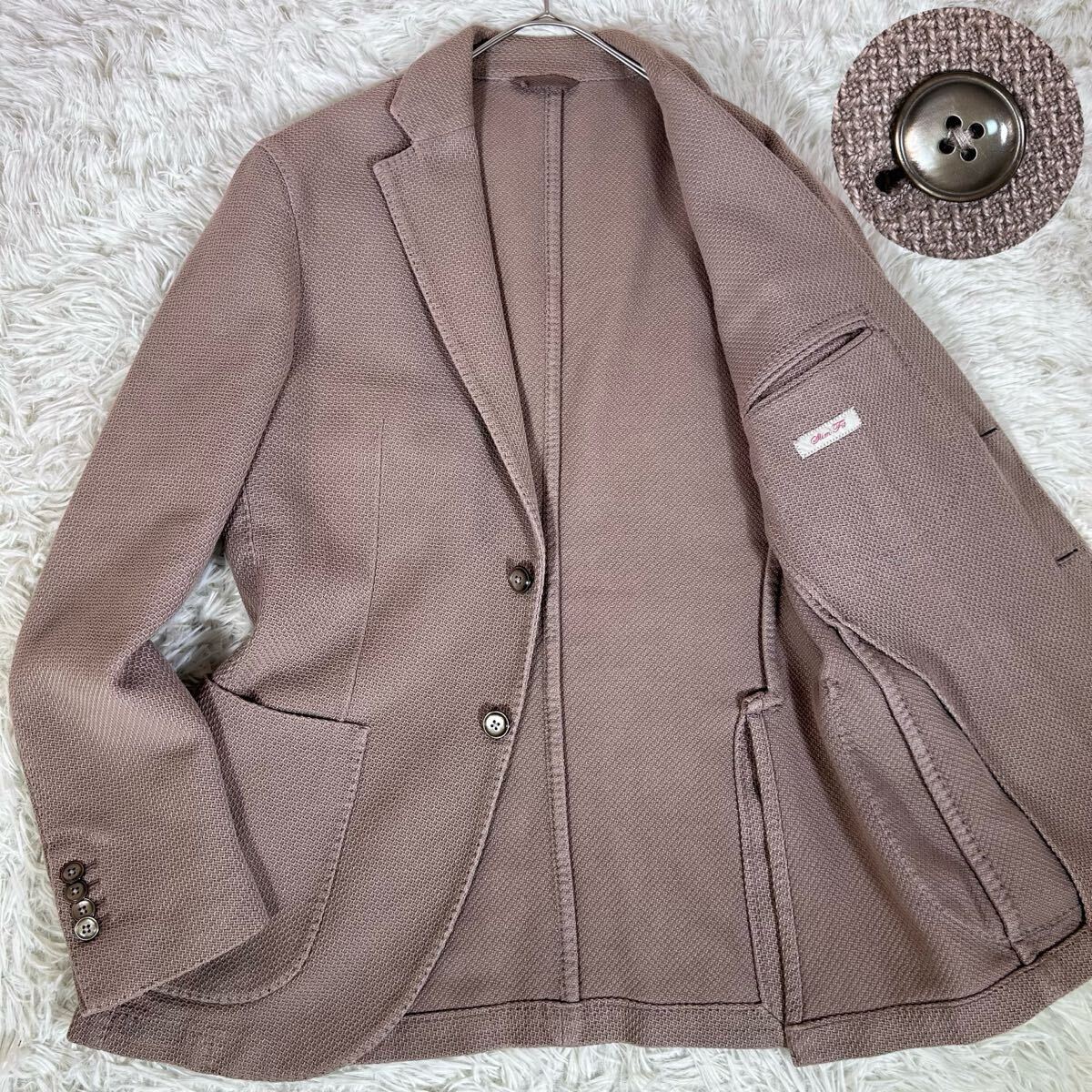 > 美品【希少!XLサイズ】L.B.M.1911 ルビアム テーラードジャケット コットン 鹿の子織り ベージュ イタリア製 背裏なし シェルボタン 春秋